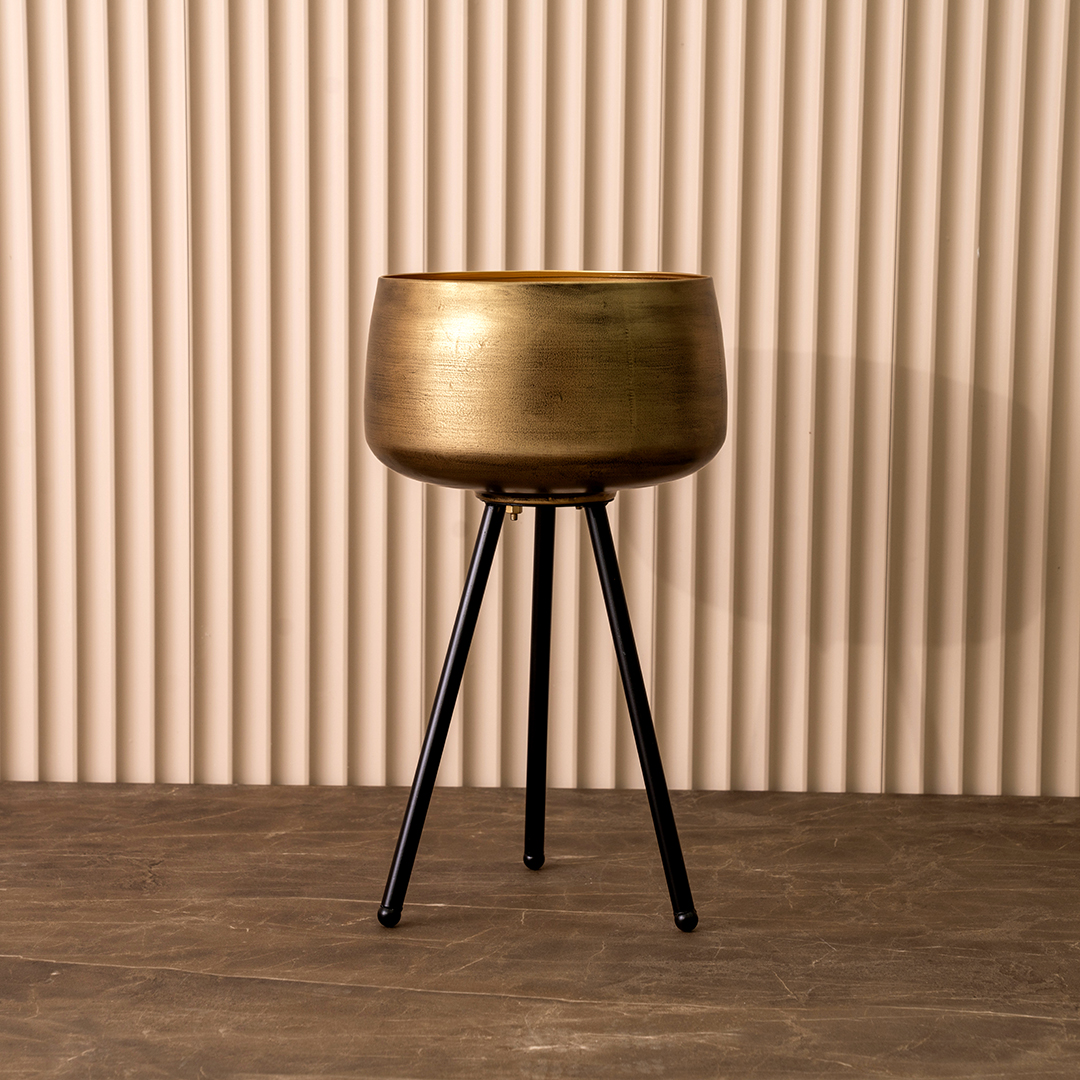 Keeth Metal planter with tripod stand gold 25.5X25.5X50 cm