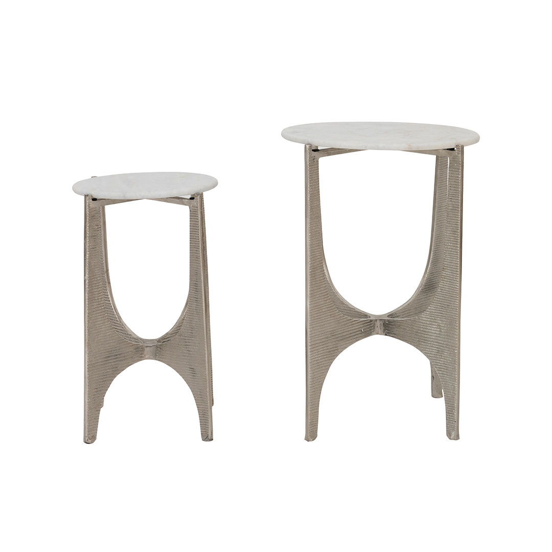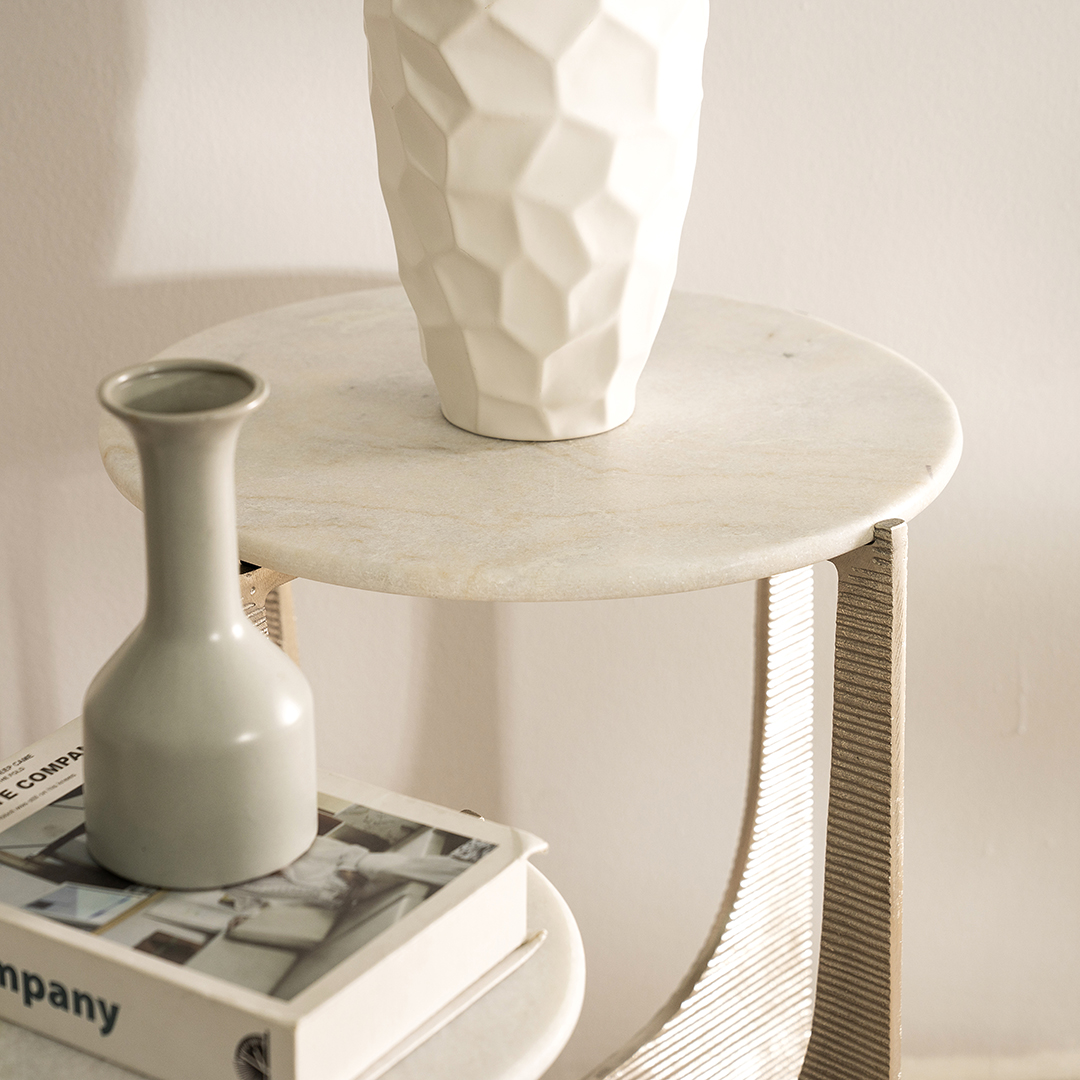 TEXTURED ROUND 37171 TABLE MARBBLE TOP COL NICKEL WHITE