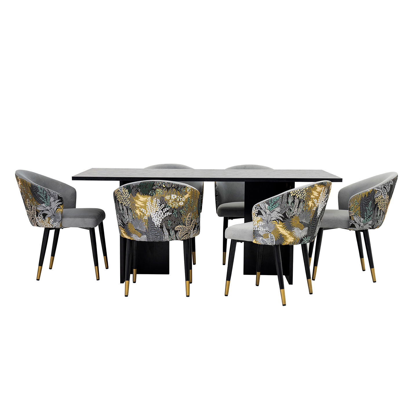 WINTON 23CYRA003 DINING SET OAK WOOD/FAB 1+6 COL TX2101-4 GREY